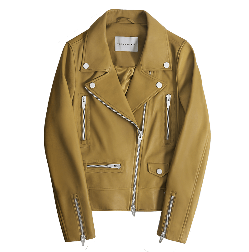 In smooth grain lambskin leather, this moto jacket turns heads in unexpected mustard. This versatile, all-season jacket comes with a lifetime warranty! Pair over a a dress and boots or sneakers, or zip up with a statement scarf in colder weather.