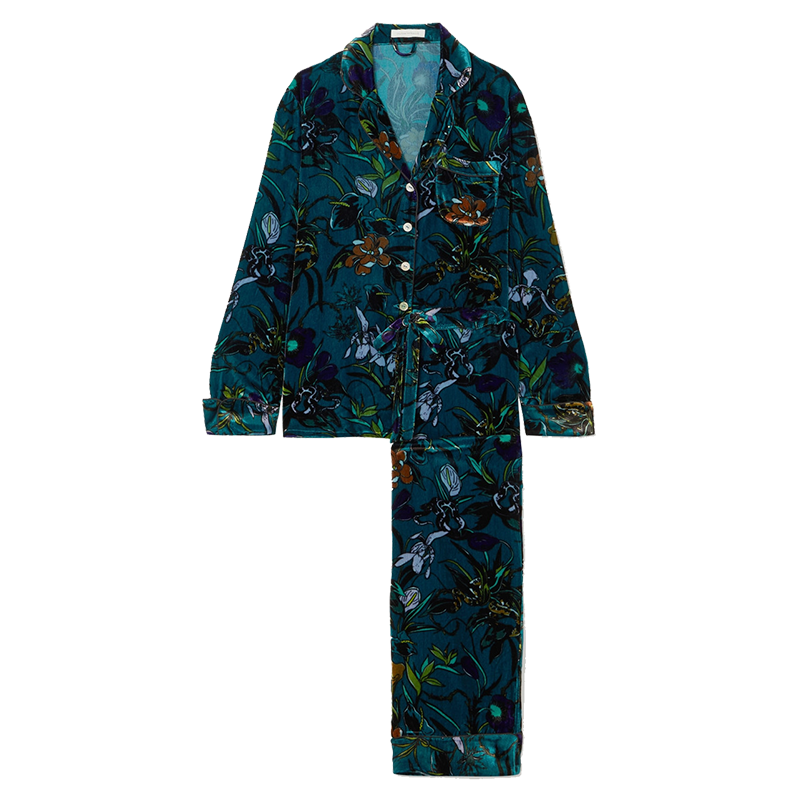 Introducing the incredibly luxe butter-soft silk velvet Pajama, the Lila Torment. An otherworldly garden of florals is printed onto rich jewel-toned blue velvet, with coiled snakes and blossoming botanicals