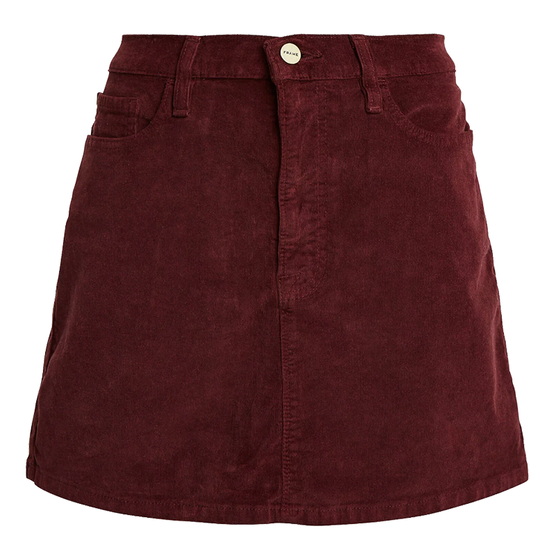 Frame's coveted Le Mini skirt is re-vamped for the new season in bordeaux red corduroy.