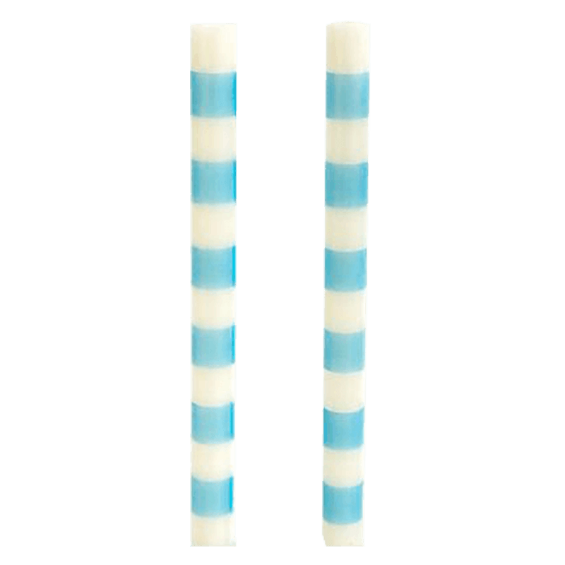 Turn your everyday meals into something more memorable with these Blue Bands Dinner Candles. They feature a fun and fresh hand-painted pattern of horizontal stripes that add the glowing touch of MacKenzie-Childs to your dining table.