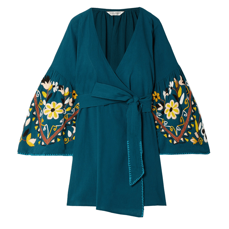 5. Sensi Studio Embroidered Crinkled-Cotton Wrap Dress
