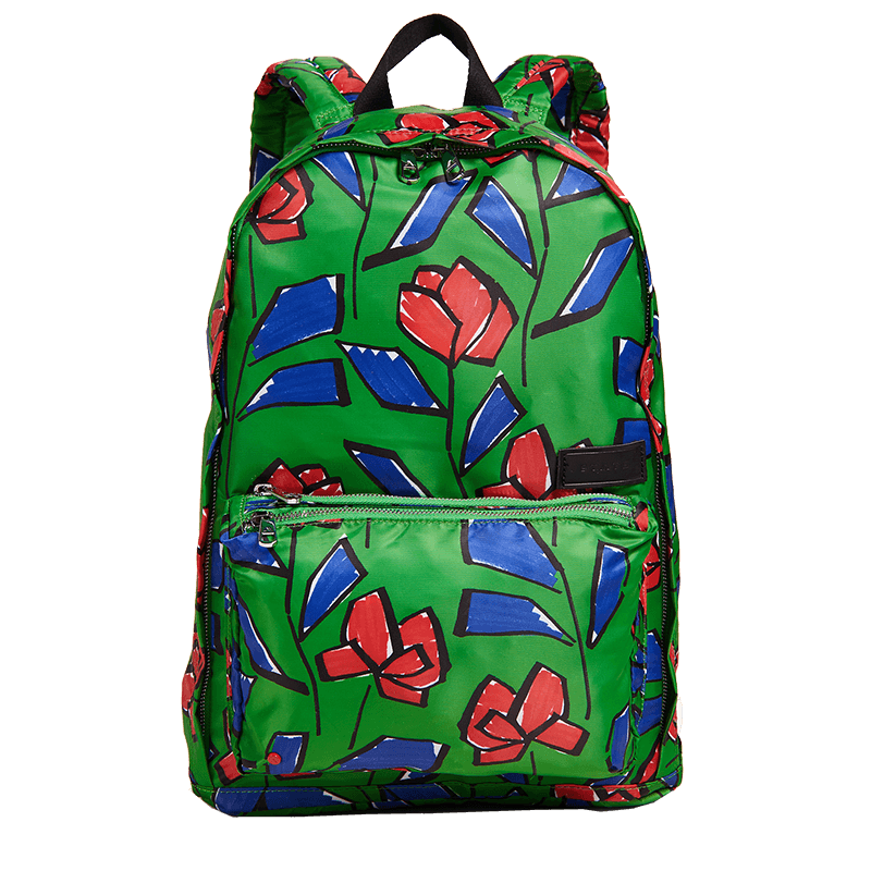 We’re counting State’s floral Lorimer backpack as our hands-free beach bag. Stuff lotions and potions in the convenient front pocket. With an interior laptop sleeve and made of technical twill, this is a cool summer carryall.