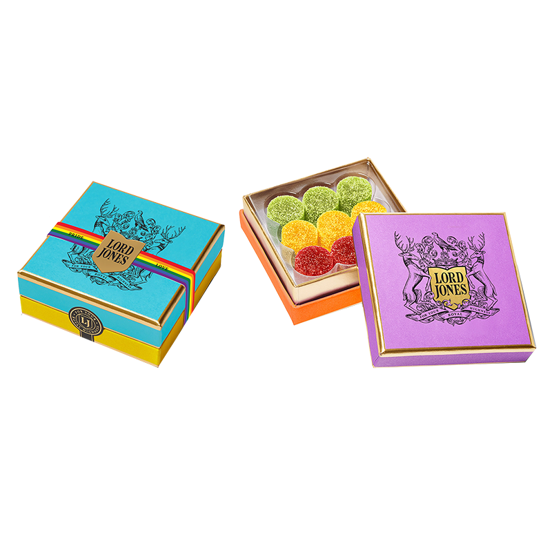"Lord Jones' limited edition gummies in melon, pineapple, and raspberry come in decorative boxes, each with a unique color combination inspired by the Pride flag." - Founder + Editor-in-Chief Tamara Rappa
