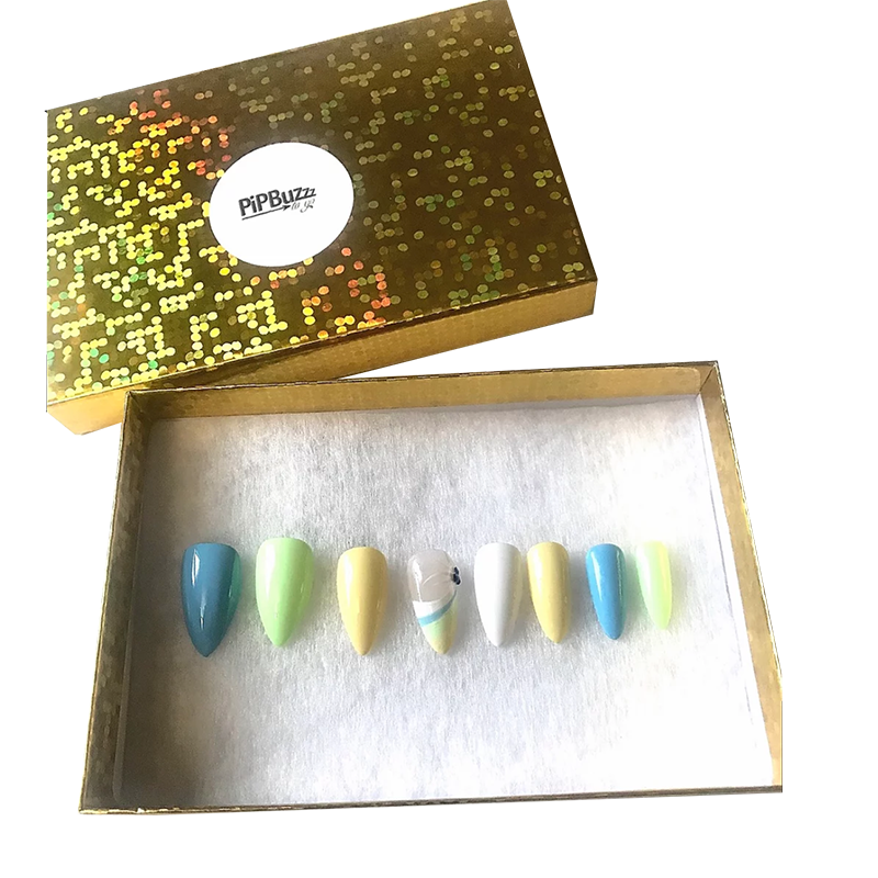 "These press on nails are a throwback moment and a necessity. They are custom created by celebrity manicurist Sunshine/Pipbuzzz and reusable…Hello win-win!" - Joiee Thorpe, Contributing Fashion Editor