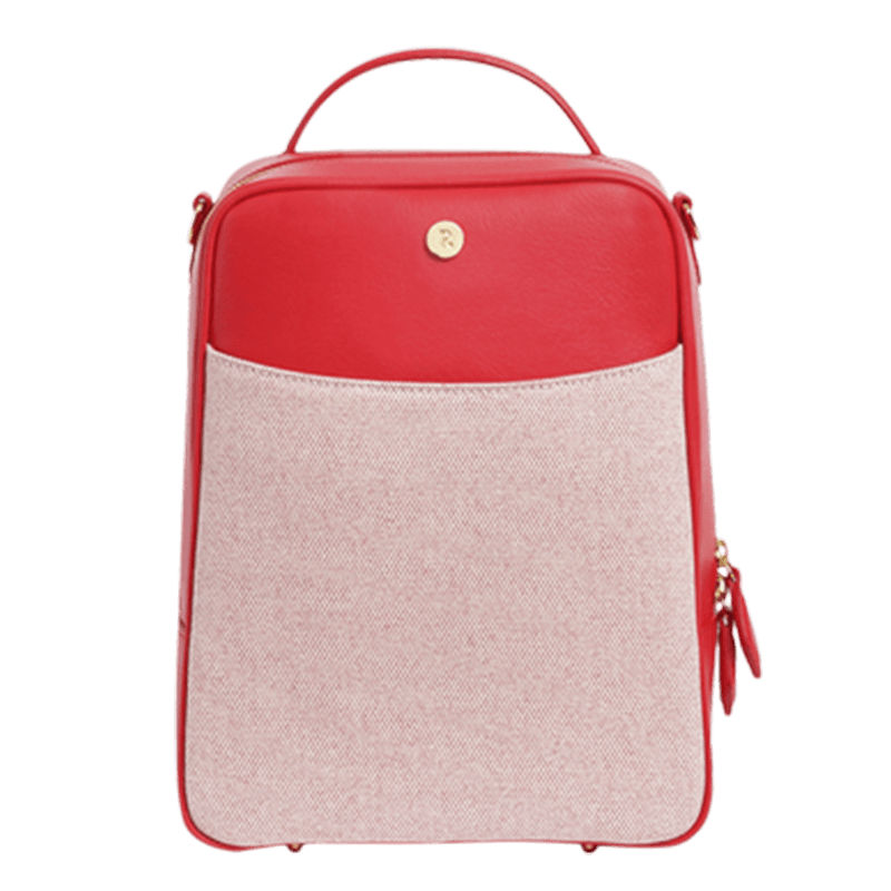 Travel hands-free and arrive with a chic, polished handbag. Has an interior zip pocket, external magnetic front pocket. Waterproof, spill-proof, canvas exterior, Italian leather panels, and adjustable leather shoulder straps