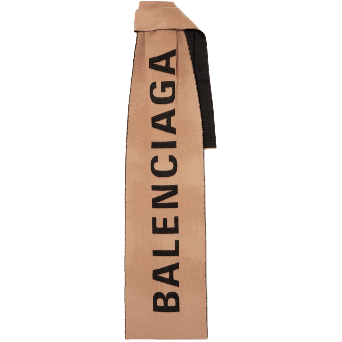 Balenciaga's scarf has been made in Italy from pure wool that's brushed for a super soft feel. It's intarsia-knitted with a sizable iteration of the brand's moniker, which appears in black on the front and beige on the reverse
