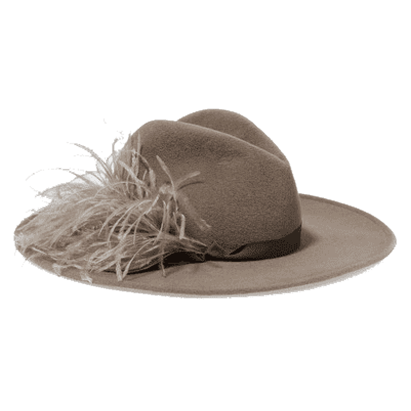 Gigi Burris uses time-honored millinery wood-blocking techniques to hand-craft hats like this 'Jeanne' fedora. Made from soft rabbit-felt with a wide brim, it's topped with wispy ostrich feathers and a tonal grosgrain trim