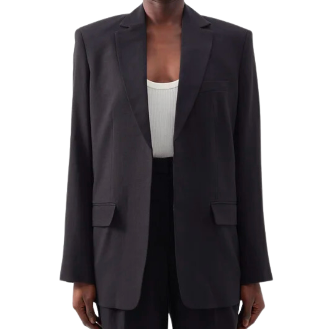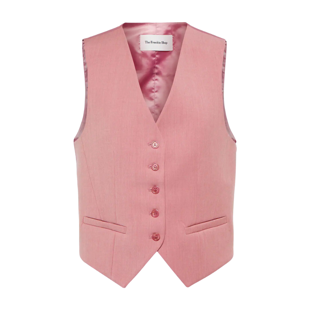 THIS PHOTO: Rosetta Getty jacket, vest, and pants; Misho rings.BELOW PHOTO: The Frankie Shop jacket, vest, and pants; Brunello Cucinetti shirt; Casadei shoes.