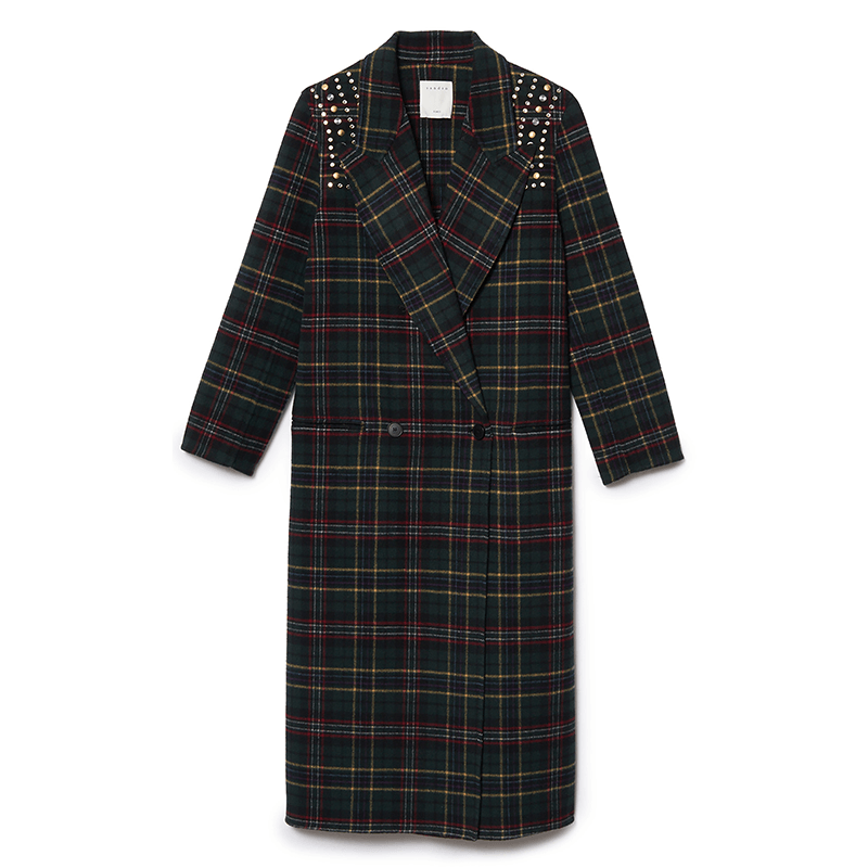 If plaid is on trend, plaid with studded rhinestones doubles the deal. Sandro adds subtle studs to the shoulders of this tailored coat for that je ne sais quoi Parisian look and feel.