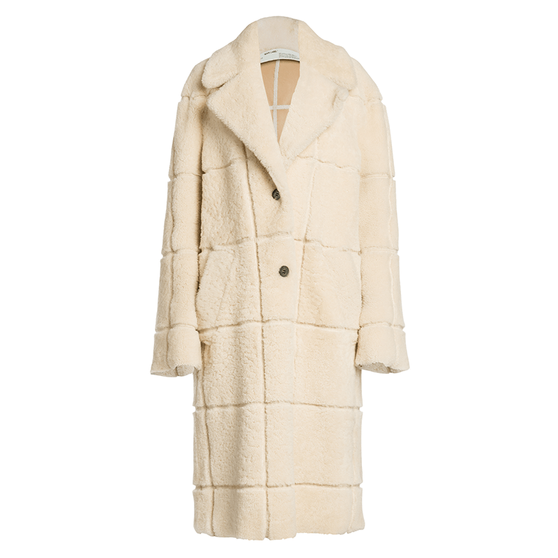 Faux fur continues its three year reign and that's because it checks the box for affordable, superior warmth, and high style. This one from Helmut Lang is as hip as it gets, with a substantial belt that adds to its chic.