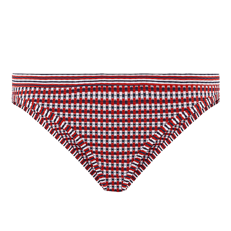 UV protection 50+ , chlorine resistant, and reversible (from stripes to jacquard).