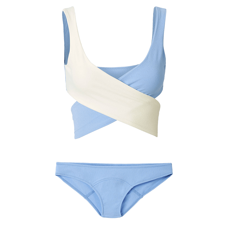 From left to right: Solid & Striped's high cut, sophisticated suit is begging to be transformed from beach to bar; adopt elevated surf girl style in this batik bikini by ViX; top fashion swim brand Marysia offers an artful, scalloped style; Lisa Marie Fernandez' sculpted bikini is a flattering head-turner; Emma Pake's edgy rainbow print will keep you fiercely on trend.