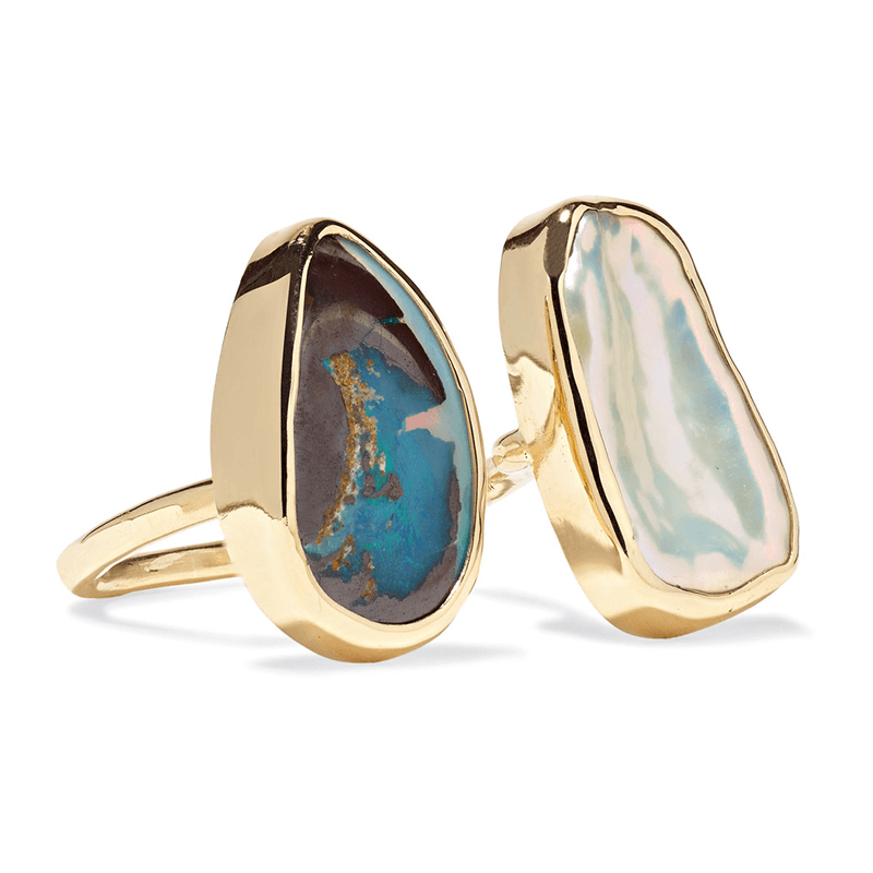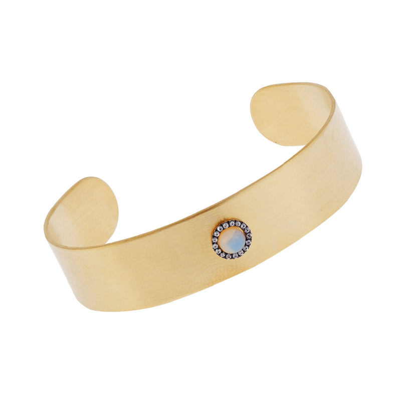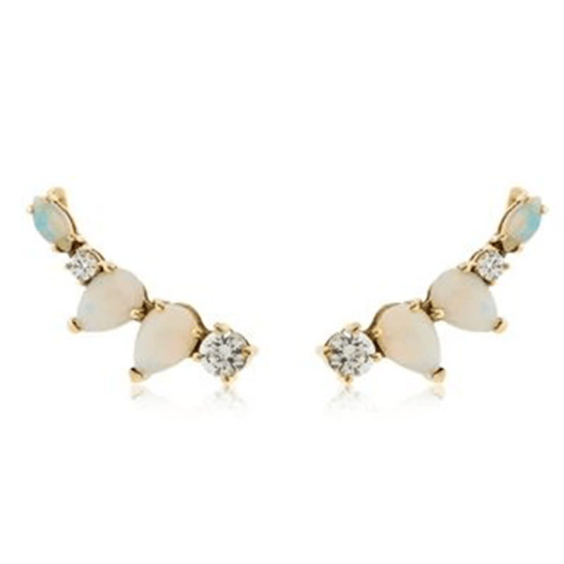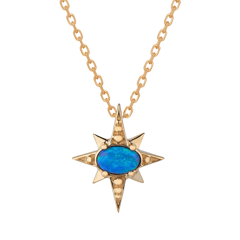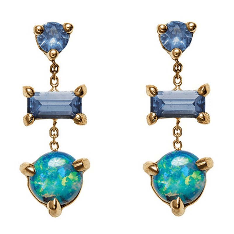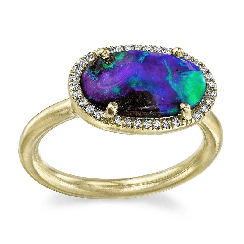 A single opal has many moods—or at least seems to—which is exactly what makes each one so irresistible. The gems flicker from brilliant intensity to demure understatement (and back again) with the barest motion, and display colors from deep sea blue to searing red and every hue in between. That changeability has made them a source of wonder wherever they’ve surfaced. Ancient Greeks thought opals bestowed the power of prophecy and a Bedouin legend insisted that the gems came from the heavens with lightning strikes. Their mystical associations make opals a natural fit for jewelry with an otherworldly air, like the crescent moon ring from EF Collection or Celine Daoust’s starry gold pendant. And the remarkable color and dramatic fire of fine opals mean that they’re the ideal focus for streamlined jewels, like Irene Neuwirth’s halo ring or Liesel Love Jewelry’s sleek cuff. However they’re worn, opals have a habit of changing their owners’ mood for the better.