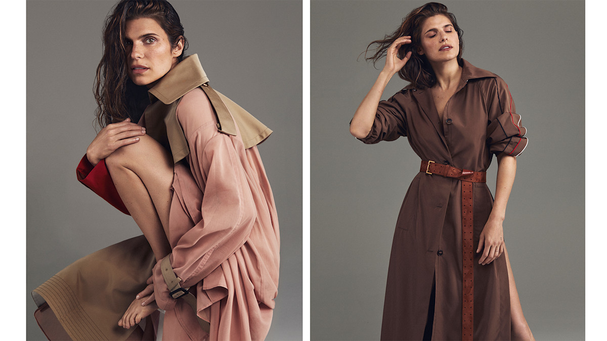 ABOVE PHOTO: Agnona Bra and Jumpsuit. LEFT: Sacai Coat at Bergdorf Goodman. RIGHT: Sonia Rykiel Coat; Agnona Belt.