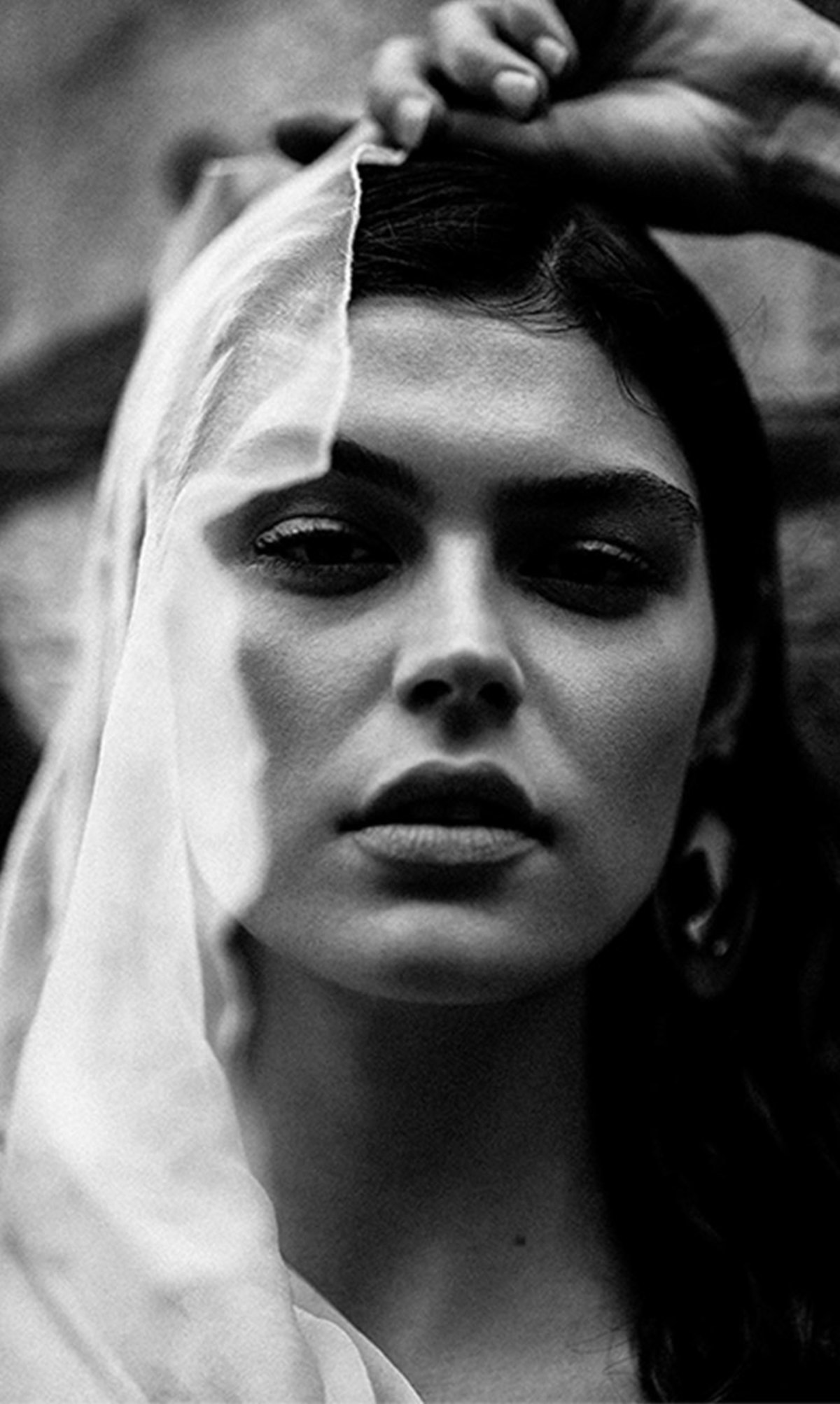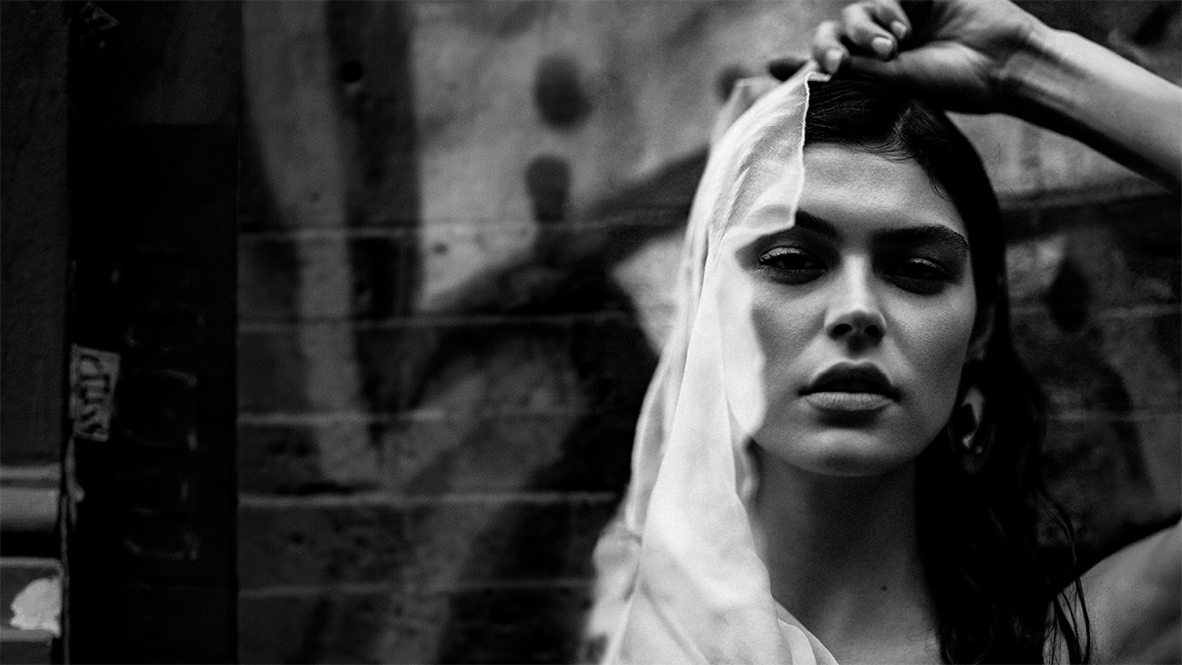 Sid Neigum Suit; Mignonne Gavigan Scarf; Morgan Lane Bra; Gaviria Earring.