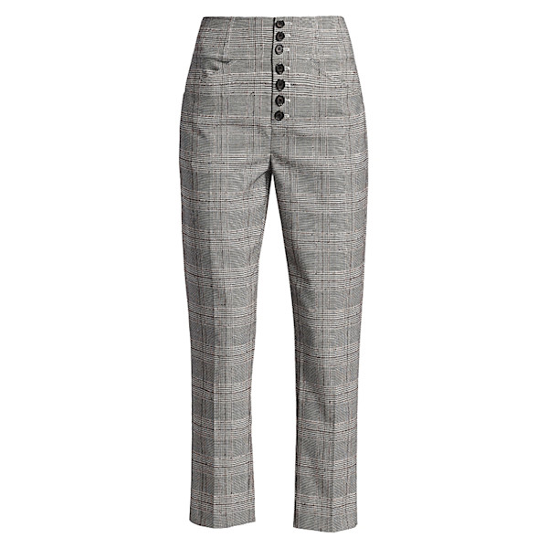 It’s a toss-up whether it’s the buttons for days or the subtle but sublime pattern that really make this look—but one things for sure: these pants are as ideal for the office as they are for your next dinner party. Cropped at just the right length, these pants are made to be worn with a simple black tank and the coordinating blazer for maximum effect.