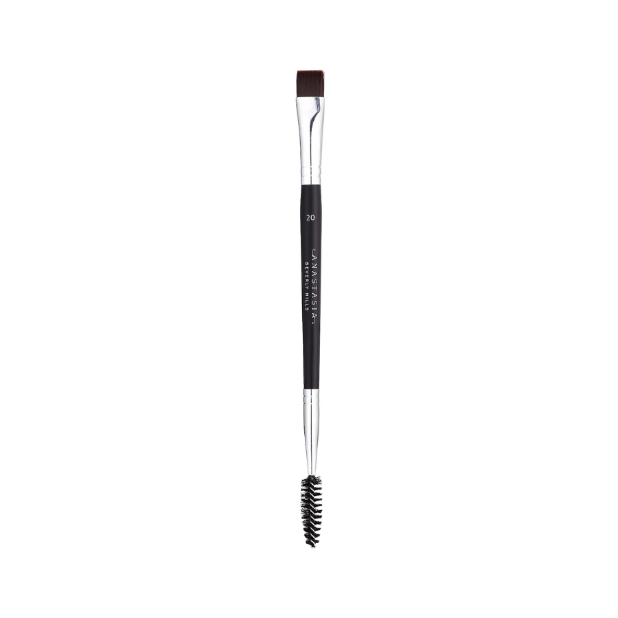 Anastasia Beverly Hills Brush 20 is a flat, square-shaped brush with firm, synthetic fibers that is ideal for defining brows and blending highlighter or concealer with ease and precision. The ultra-thin, densely-packed fibers deliver an even and smooth blend for clean definition. The custom spoolie brush is specially-designed to seamlessly blend cream and liquid products for a natural-looking finish.