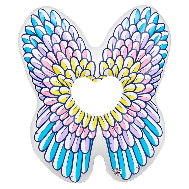 Earn your wings without doing anything (except lounging lazily in a pool). This pool float in the shape of feathery angel wings has a heart-shaped opening and all the attention-getting power fashionable partygoers covet.