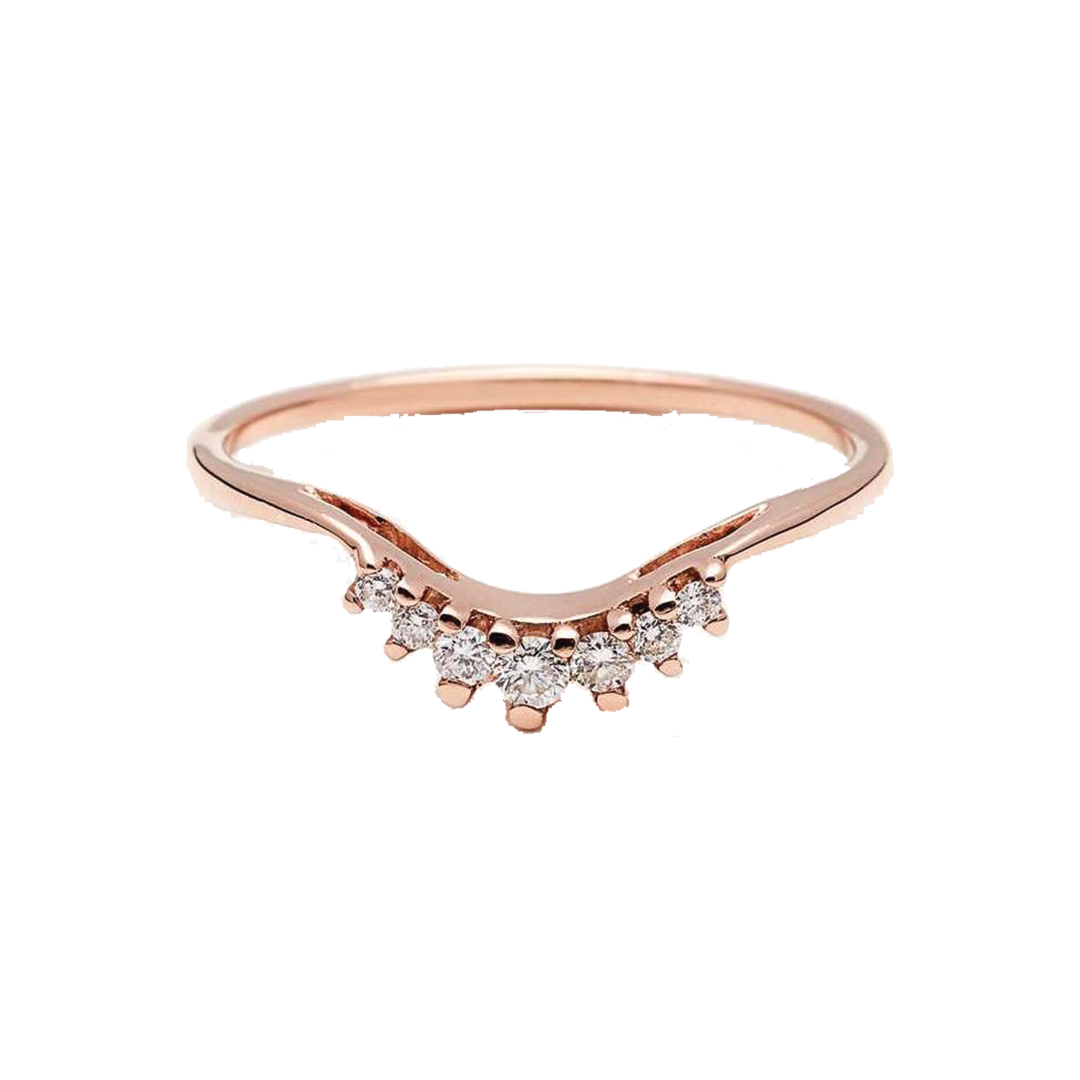 A cluster of seven prong-set diamonds brings exquisite glimmer to a slender, delicately curved rose-gold band that can be worn alone or nested with Anna Sheffield's Luna engagement ring.