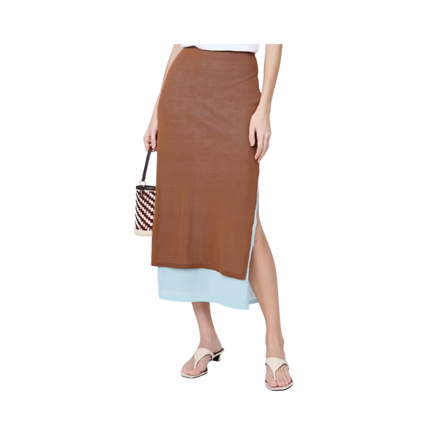 This column skirt cut from two layers of Banana Republic's ultra-fine cotton jersey is classic 1990's. It features a fitted waist and hip with a straight skirt.