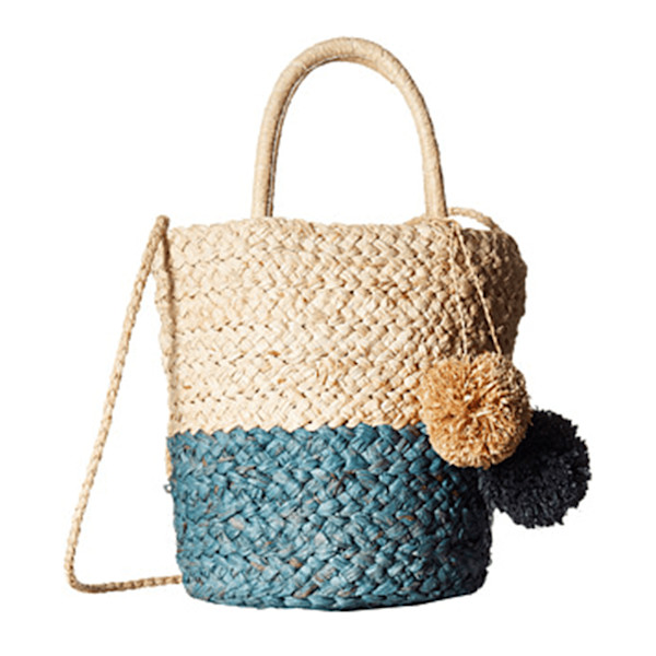 We didn’t know something so casual could be such a showstopper. This comfortably lined bi-color straw tote with pompom details and a crossbody strap has serious head-turning power. For a nautical-inspired weekend away or an errand-filled weekend at home, this bag is the statement in your statement look.