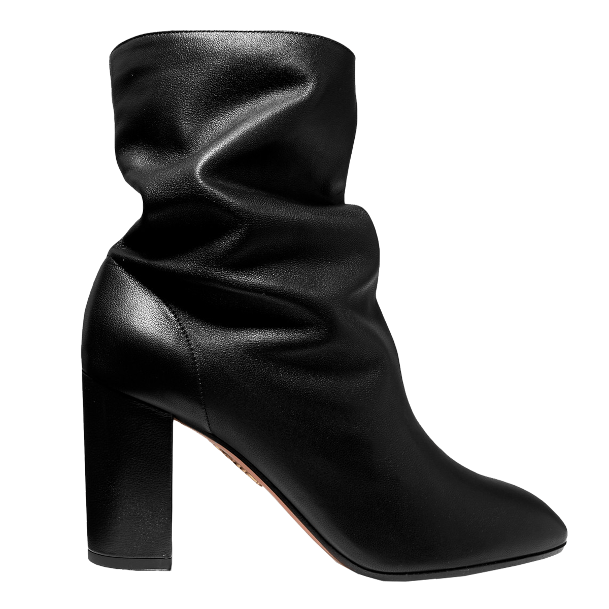 A simple scrunch bootie in napa calfskin leather has us gushing. With a distinct nod to the 80s, this slouchy silhouette is a major must-try. Pair with denim, long dresses, short skirts, and a scrunchie around your wrist. (Just kidding about that last part…kinda.)