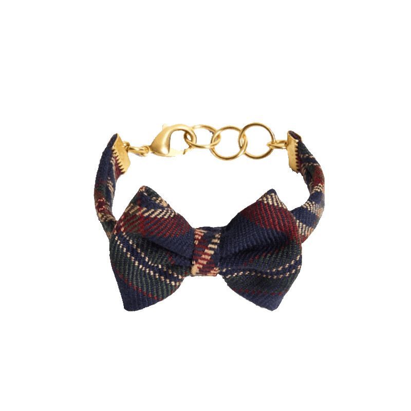We love the idea of stacking this unique wool tartan bow bracelet amongst a pile of bangles and pairing with an oversized sweater and jeans.