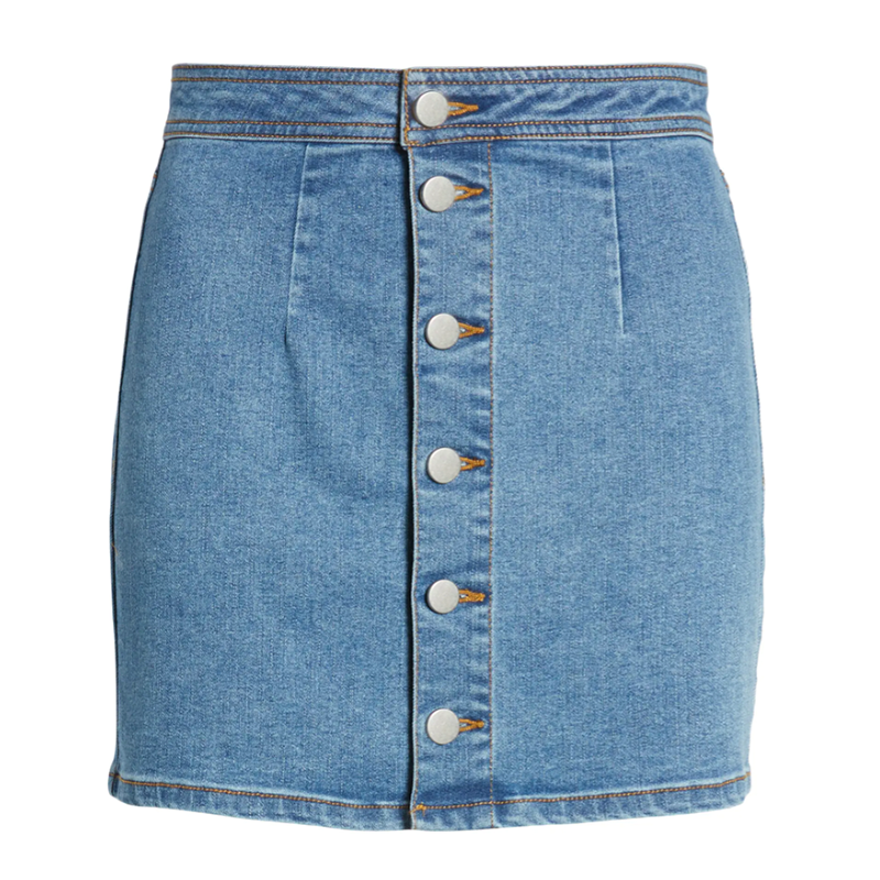Buttons on the front of this denim mini mean casual-cool and subtle schoolgirl vibes.