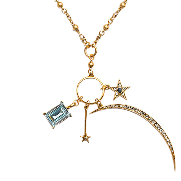The charm pendant necklace is one of our favorite jewelry trends, and this piece is a perfect example of why. With a collection of friendly charms, like stars and a crescent moon (in semi-precious lapis lazuli and Swarovski crystals), you can wear this 22k gold-dipped necklace every day and not get bored of it. Layer it with other necklaces to add even more personality to your look.