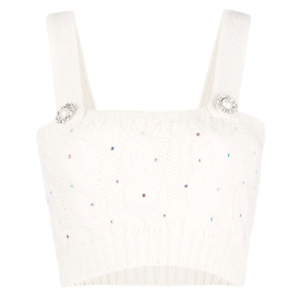 Alessandra Rich designed her Spring '21 'Euphoria' collection expressly with the purpose of lifting moods. Embellished with joyful, multicolored crystals, this top has been cable-knitted in Italy and blended with touches of alpaca and wool for a soft, fluffy feel. The shoulder straps are adorned with the brand's signature buttons, too.