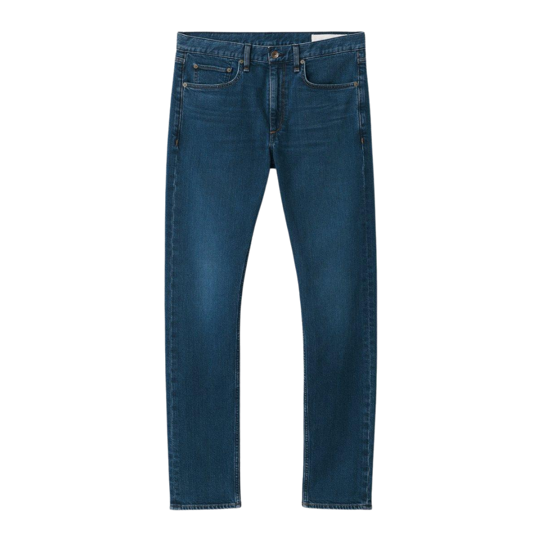 Here in Authentic Stretch: selvedge-inspired denim with an optimal, shape-holding touch of comfort stretch. Doyle is an Italian denim in a medium indigo wash. Button fly.