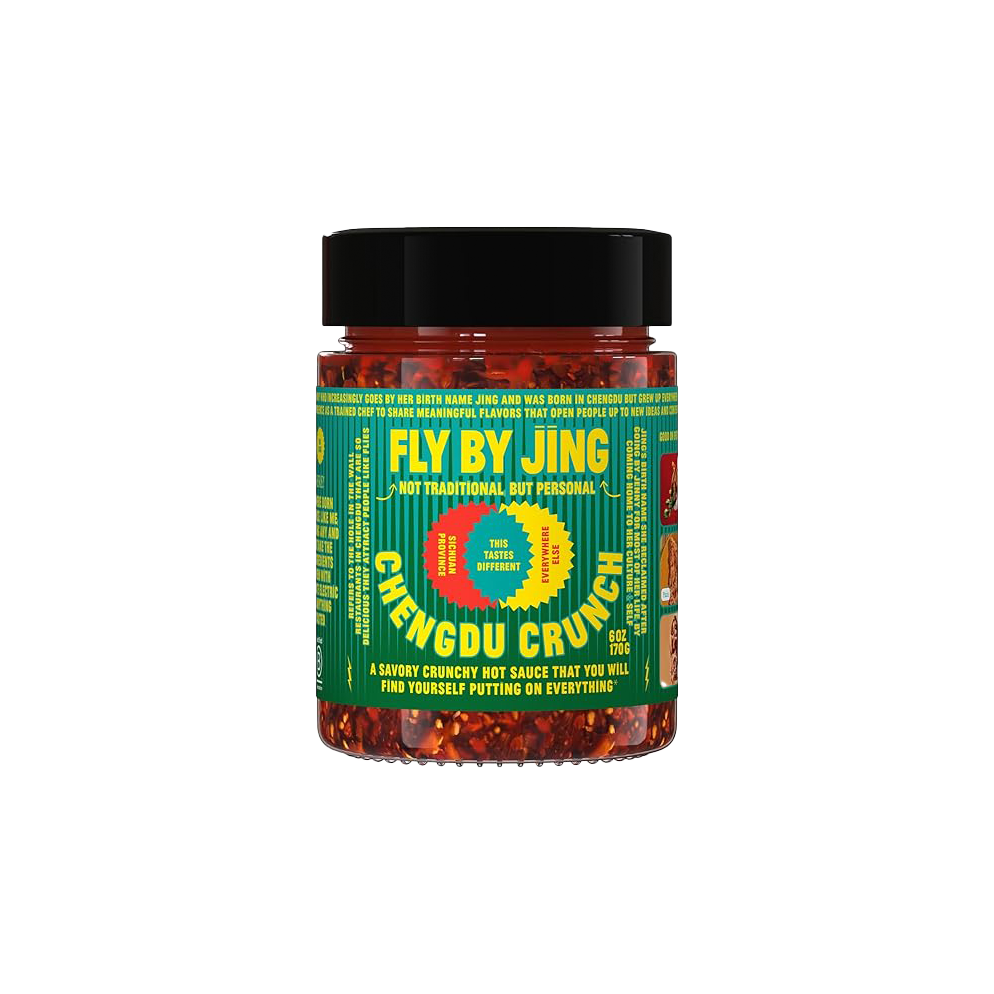 Chengdu Crunch is Fly By Jing's latest flavor evolution and a magical crunch in a jar. It’s spicy, savory, umami, and packed with the crunchiest chili textures with the addition of pumpkin, sunflower, and sesame seeds, as well as yellow split peas and shallot. First extra crunchy Chinese chili condiment in the US; Non GMO; tree nut and peanut free; vegan; no artificial preservatives, flavors, or MSG.