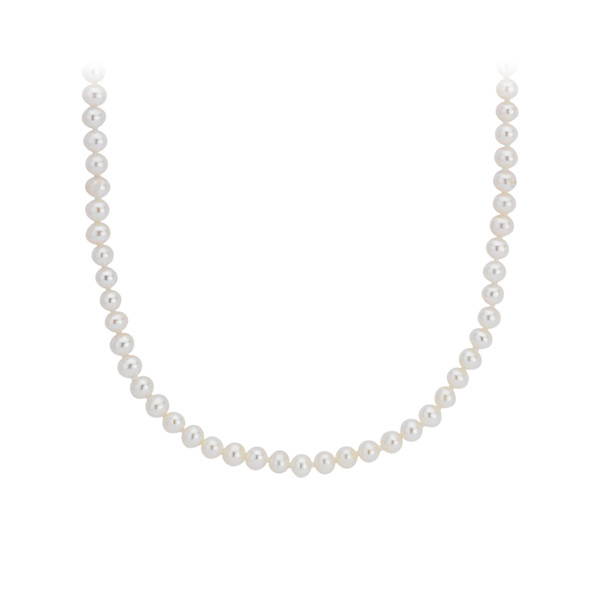 Blue Nile's classic pearl strand features nearly round freshwater cultured pearls strung on a hand-knotted silk cord. At your choice of either 16 or 18 inches, this strand is secured with a 14k white gold lobster clasp. Blue Nile gemologists ensure that our pearls meet the highest quality expectations, ensuring you the best value.