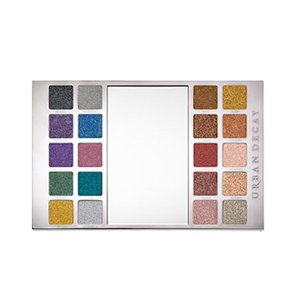 This limited-edition palette is loaded with 20 of Urban Decay’s most amped-up metallic shadows yet—and every single one is new and exclusive. It’s all organized by color: brights on the left, neutrals on the right. The palette is glam rock hot, and totally practical too. The killer lavender case has a crushed metal effect on one end. It slides open to reveal the shadow tray. It also includes a big mirror.