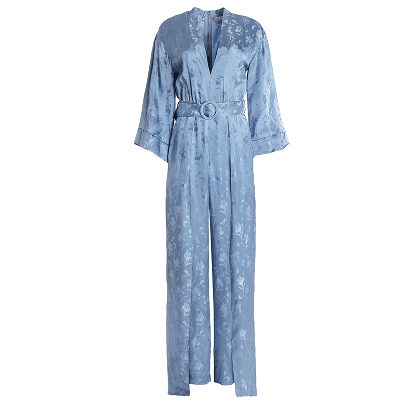 Part kimono, part pajama set - all chic comfort. Every woman needs a statement jumpsuit and this one has all the bells and whistles - dramatic flared sleeves, self-belt and sexy slits on the leg.