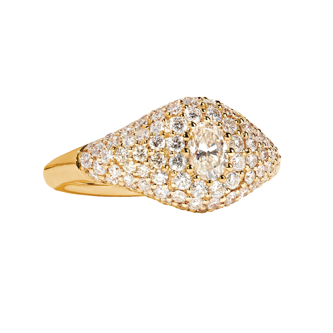 Fine jewelry designers Jenny Klatt and Stephanie Wynne Lalin inject a sense of relaxed femininity and polish into all of Jemma Wynne's collections. A nod to classic signet styles, this handcrafted 18-karat gold ring is set with 1.40-carats of dazzling diamonds, including a striking oval center.