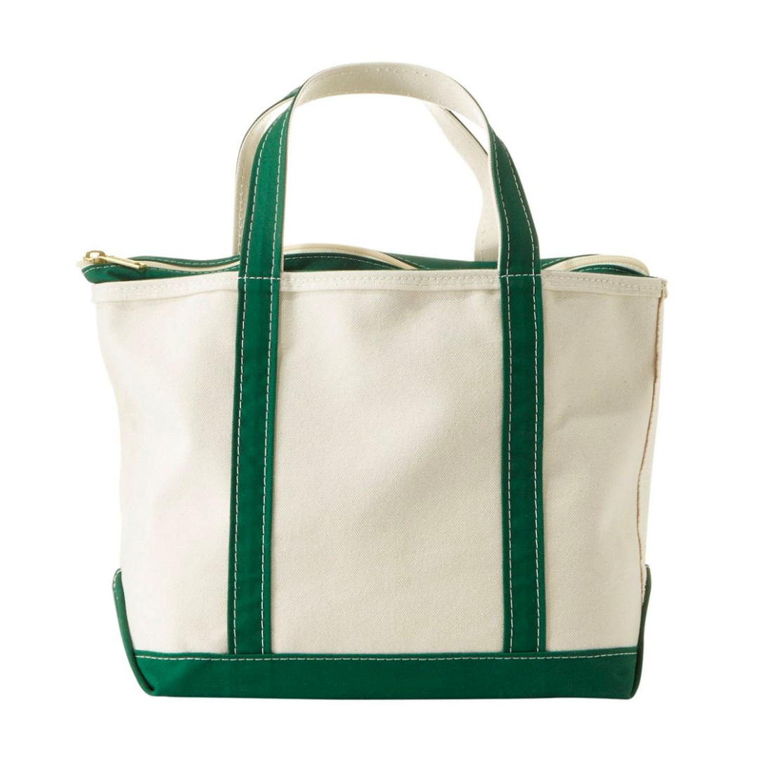 LL Bean's heritage tote with a ton of history is one to own and return to time and again. Crafted in Maine and from heavyweight canvas this sturdy go-anywhere tote offers reinforced handles and double stitched seams in classic American-prep style. A staple favorite tote, especially perfect because of its zip top feature.