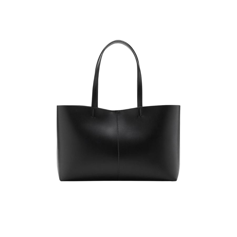 In vegan leather comes this timeless style by Mango, a shopper that features two slim shoulder straps and a magnetic button closure.