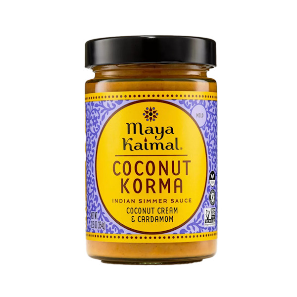 Maya’s Coconut Korma recipe captures the mild creaminess of well loved North Indian kormas. We use layer in a rich blend of coconut cream and tomatoes with warming spices like paprika, turmeric and cardamom. This comforting curry is very versatile and pairs well simmered with any protein and or veggie. 12.5 oz