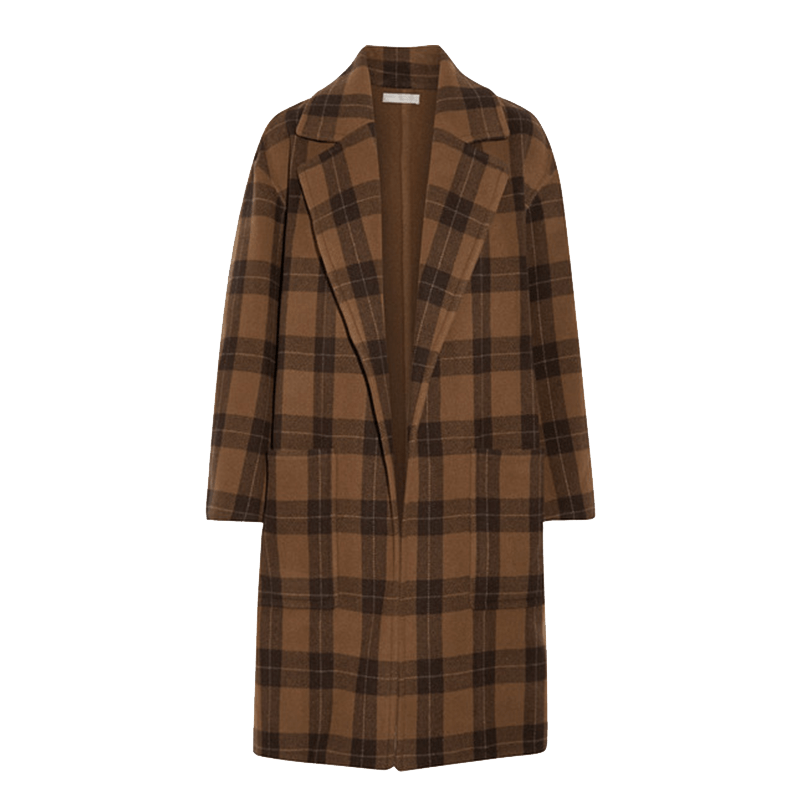 Add plaid to your wardrobe all season long by sporting it on your coat. Buffalo plaid in two combined neutrals make it versatile, in a silhouette that’s relaxed and totally chic.