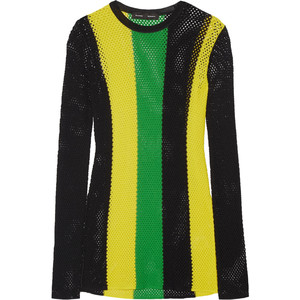 Proenza Schouler's hand knit open mesh top in bold, bright striping. Layer it over a camisole for a cool weekend look.