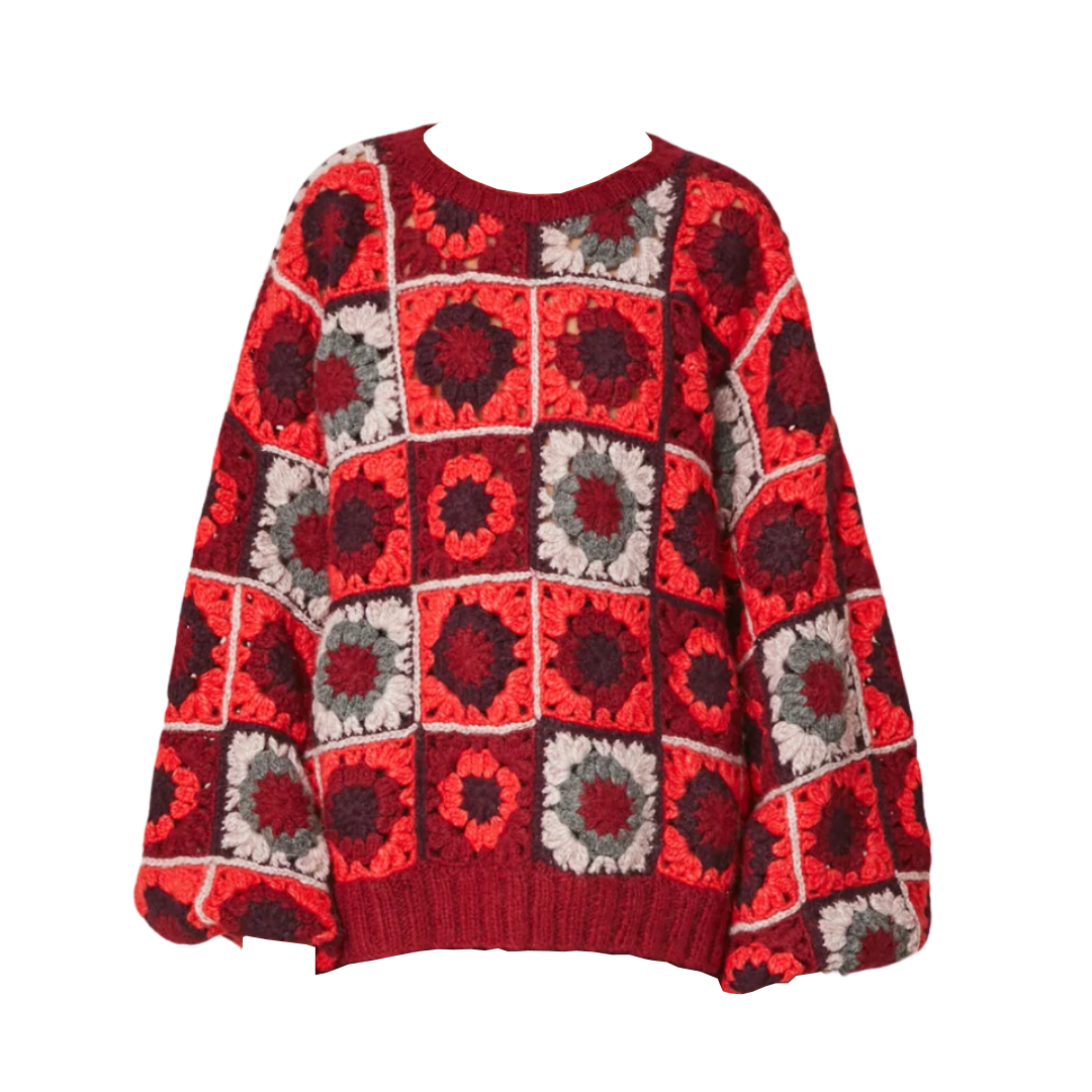 Spun from an incredibly soft alpaca blend, Rhode's oversized Hewett sweater features crochet granny squares sewn in patchwork.
