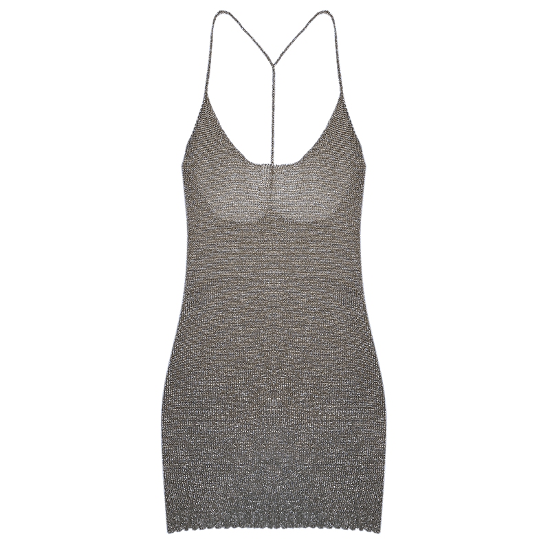 On the hunt for a mind-blowing after-hours dress? Didn’t know you were on the hunt until you saw this one? This mini metallic racerback cocktail dress handmade with high tech japanese yarn is the glistening party dress of our dreams. The most stylish way to see and be sheen, done.