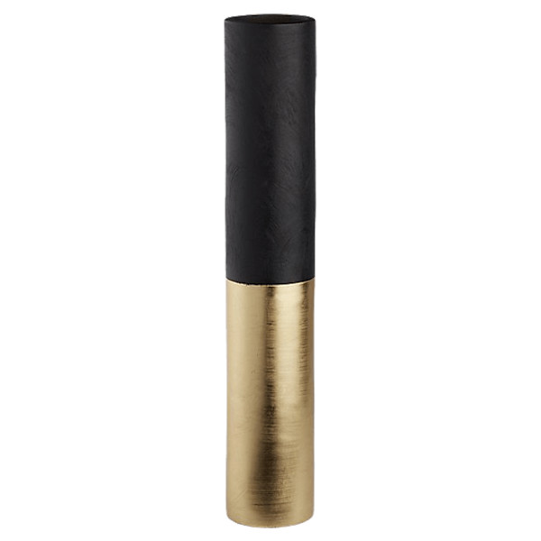 Called Chulucanas, this unique style of Peruvian pottery has been hand-thrown by artists for generations, and the methods used give the piece its signature blackened finish and unique texture. This dual-finish cylinder vase is brushed with glam gold leaf. It's ancient artistry for the modern home. The Talara vase is a CB2 exclusive.