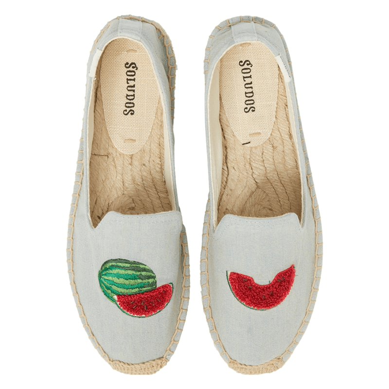 Mediterranean-inspired espadrilles, Soludos shoes are known for their classic style and eco-friendly jute sole. We’ve always thought they were the quintessence of summer, but these watermelon-embroidered ones with a platform sole just make us want to vacation year-round.