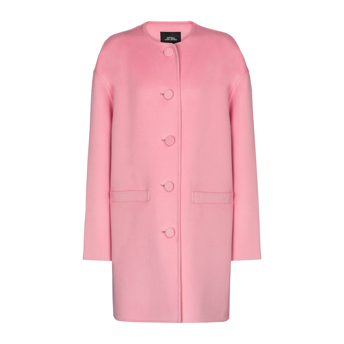 We love the combination of a relaxed fit and collarless neckline. A very Marc Jacobs look in a double-faced blend of wool, cashmere and silk.